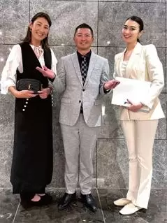片岡大育プロのスポンサーさんの懇親会で。右はMCの小笠原舞子さん。178㎝とか(驚)。