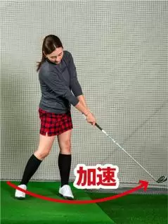 ミスショットを怖がらないで、インパクトが緩まないようにスイングしましょう。ボールに向かってクラブヘッドを加速させるつもりで振れば当たりが全然違ってくるはずです。