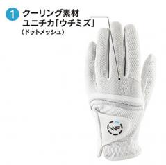 繊維メーカーのユニチカが開発した気化促進繊維「ウチミズ」をメインファブリックに採用し、汗の蒸発を積極的に加速させることで冷却効果を発揮。また、吸汗速乾性、UVカット性(紫外線遮蔽率 90%以上)に優れている。手のひら側にはKBセーレン社が開発したベルセイムクール・メッシュ素材を採用。通気性とグリップ性能を両立している。