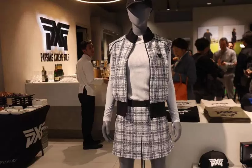 PXGの初直営店をお祝いすべく集まったのは、関係者とゴルフメディア、そしてインフルエンサーたち。今日初めて実際に手に取ってみた、という人も多く、広々とした店内には満遍なく、多くのゲストで埋め尽くされていた。