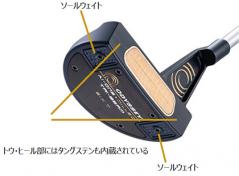 「Ai-ONE MILLED TRI-BEAM パター」のボディはステンレススチール製で、ヘッド仕上げはAi ONE MILLED パター、TRI BEAM パター同様に濃紺のPVD となっている。このボディには、ソール前方のトウ・ヒールにそれぞれ約10g ずつのウェイトを設置していることに加え、ヘッド内部のトウ・ヒールにもそれぞれ最大約16g(ヘッドタイプにより数値が異なる)ずつのタングステンが搭載されている。これらの処理により、「Ai-ONE MILLED TRI-BEAM パター」は、TRI HOT 5K パターに迫るほどの高慣性モーメントを実現している。