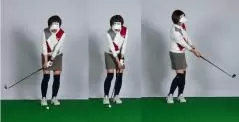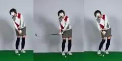 ということで、修正したのはアドレス。まずは真っすぐ立っていただきました。ご本人としてはかなり違和感があったと思いますが、これは慣れていただくしかありません。また、右に傾いてオープンに構えていたのをマイナーチェンジしました。足元から肩まで全てオープンになっていたのを、ツマ先オープン、腰オープン、胸もちょっとオープンで肩をスクエアにしていただいたのです。