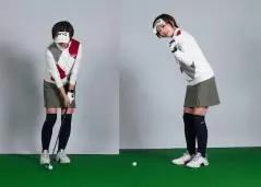 アドレスで体を右に傾けてしまうと、下半身に対して上半身が右にある感じになります。当然、体の右サイドが下がった構えになりますから普通に振ったらヘッドが手前に落ちてダフり、それを嫌がるとすくい打ちになってトップするという悪循環になっていました。さらにダフりたくないからとボールを右寄りに置いていたTさん。それによって右への傾きがさらに大きくなり右に置いたボールでさえトップしていたのです。