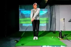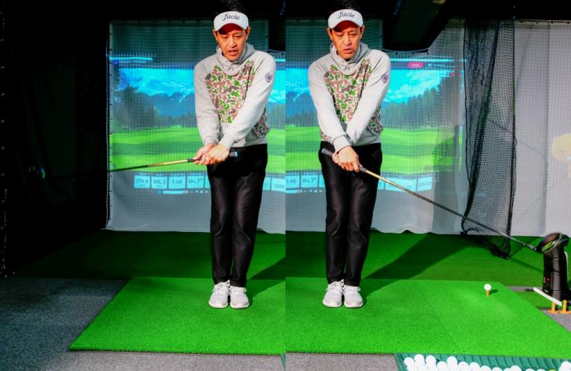 いやいや普通の練習場ではお客さんの目もあって恥ずかしいけど、インドアなら人目を気にせずできるが。