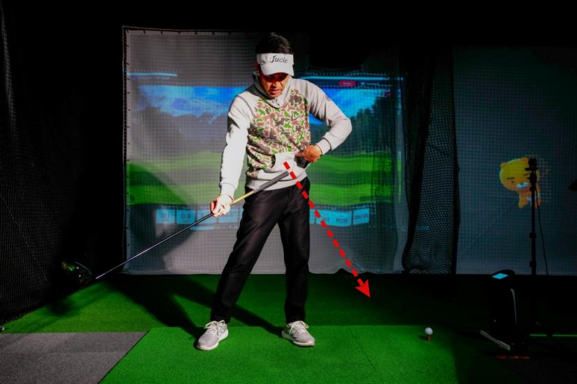 「腕だけで振るとなったとき、みなさんは腕は振れているけどシャフトが振れてない。ヘッドが動いていない。腕の振りとヘッドスピードが一緒になってしまっていることが多い。ヘッドスピードを出すためには腕が止まり、ヘッドがより動いてなければなりません。ヘッドが走らないと飛ばせません」(内海プロ)