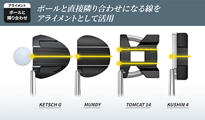 PINGではパターのアライメントを分類するための研究を行い、多くのゴルファーのアライメント効果をテストした結果、4つの異なるアライメントタイプに分類されるということが判明。