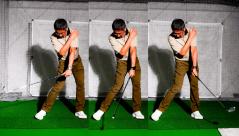 左肩が「左の壁」になるには切り返しから、体がちゃんと順序よく動いていないとダメだという。