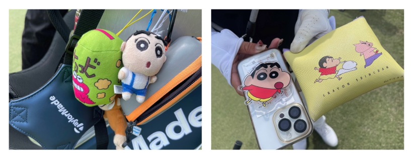 こちらは山路晶プロのキャディバッグについていたキーホルダーと、小物ポーチ。そして携帯ケースまで!