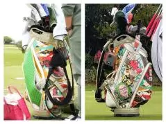 プロゴルファーにとって相棒とも言えるキャディバッグ。プロの愛がこもったものばかりでみているだけでも楽しい。ぜひ皆さんも、会場で探してみてね。