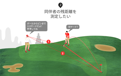 三角測量が可能なファインキャディモードを搭載し、自分だけでなく同伴者の距離も測定可能