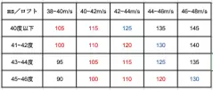 ロフト角とヘッドスピードの関係が14パターンの中に収まればOK