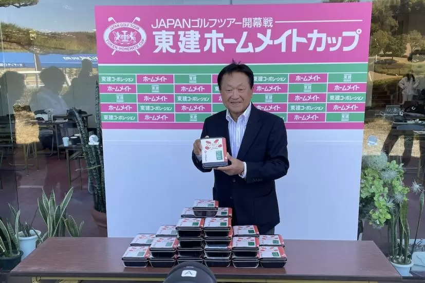 新たにJGTO副会長に就任した倉本昌弘氏が、JGTOからの感謝の気持ちです、というありがたい言葉とともに報道陣に振舞ってくれた。その後の囲み取材では改めて副会長就任の挨拶と、新シーズンが始まるにあたっての抱負を語ってくれたのでお伝えしたい。