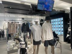 奥に進むと、アパレルブランド「トラヴィスマシュー」もずらり。今季の24ssからレディースラインも登場し、ラインナップが増えたトラヴィスのアパレルが手にとってみられるのは限られた店舗のみ。