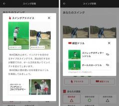 これも同じように、どこが悪いのかという解説や、見本のスイングと自分のスイングを見比べる写真があり、練習ドリルの動画も紹介してくれます。