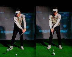 ハンドファーストとはインパクトでヘッドよりもグリップが飛球線方向に先行している形。この形だけを作っても上手くはいかない。