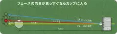インパクト時にフェース面を目標に対してスクエアに保つことが出来れば、ダウンワード・ストロークの方向によって予めボールのコロがる方向を予測し、かつ確定(定量化)できることになる。何故ならば、「2ベクトルの合成の法則」が存在するからである。
