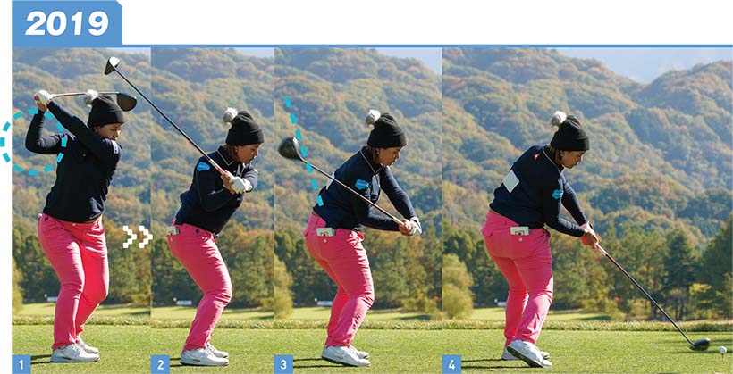 ビックリするくらいスイングが変わりましたね。賞金女王になった選手がここまでスイングを変えることはスゴい。鈴木選手本人も「7勝した2019年シーズンより、今のスイングの方が絶対に良くなった」と言っていましたが、安定感は間違いなく上がっていると思います。