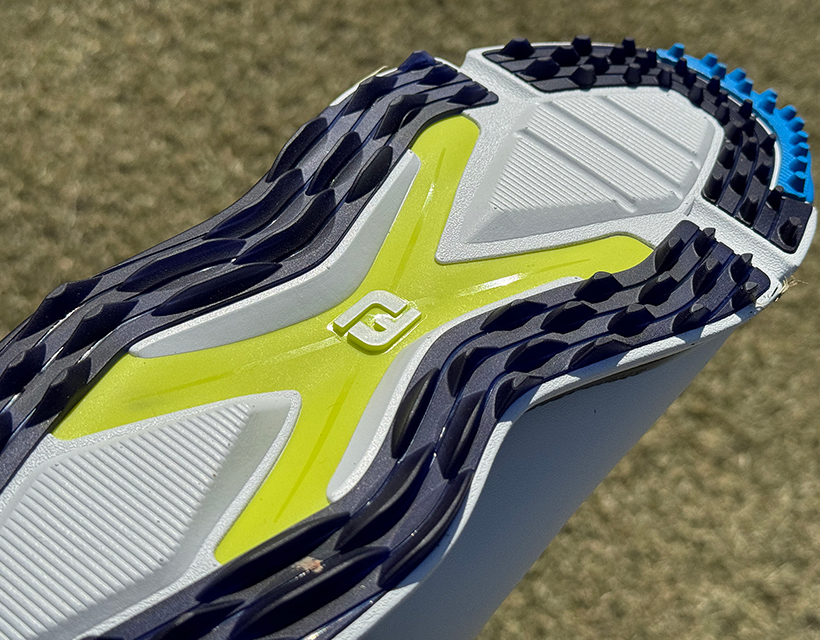 シューズのデザインとしては、白ベースでシンプルながら、ネイビーやイエロー、ブルーなどが上手く配されていて、なかなかカッコいいと僕は思います。ソールのグラデーション使いも上手いですね。最近のフットジョイのシューズは上手くグラデーションを使っている感じがします。