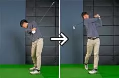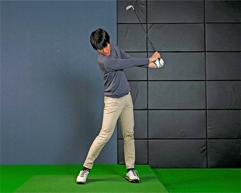 そうなるとボールに対してエネルギーを働かせるのが難しいですし、ダウンスイングの動きが揃いにくく不自然にもなりやすいのです。