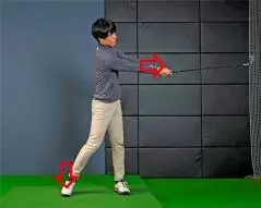 誰かに押さえてもらったクラブヘッドを今度は引っ張ってもらいましょう。あなたは目標方向に押してはいけません。