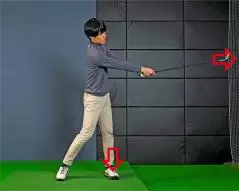 フォロースルーを出そうとするほど体重が右足に残りやすい