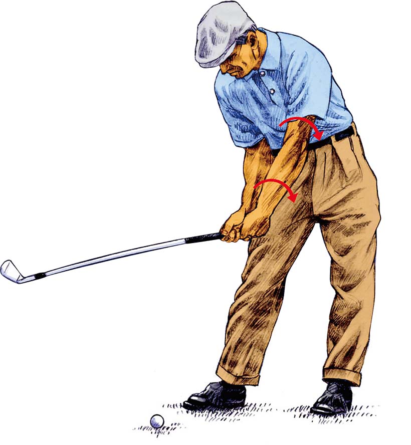 野球のサイドスローのイメージを、スイングの基本に置いたホーガン。だが、ゴルフではクラブヘッドが手元より離れているため、振り遅れる動きにもなりやすい。