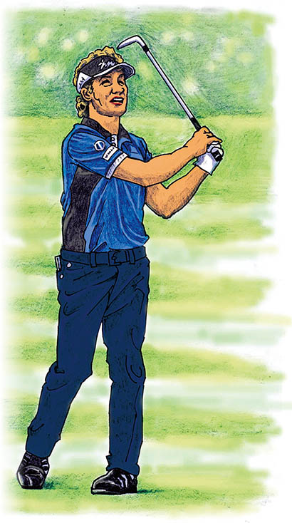 還暦を過ぎてもシニアツアーで活躍を続けるベルンハルト・ランガーのスイングは、たぐり動作のメリハリがとても明確だという。