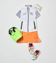 ファンを使用する際にはベストにほどよいボリュームが出るので、ポップな色や柄アイテムをあわせて、コーディネートをカラフルに仕上げるのがポイント。