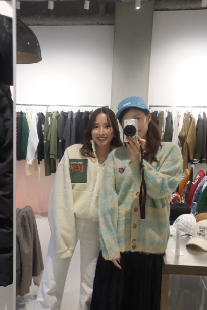 私は、ティファニーブルーが可愛いニットを着用。爽やかで優しい印象に。これは完全に私服としてヘビロテしそうな予感……
