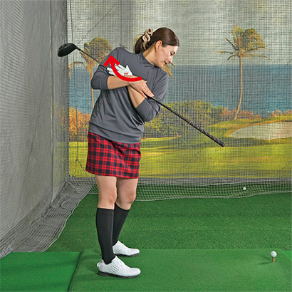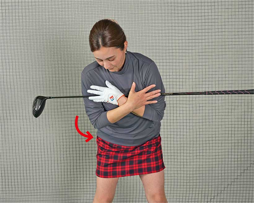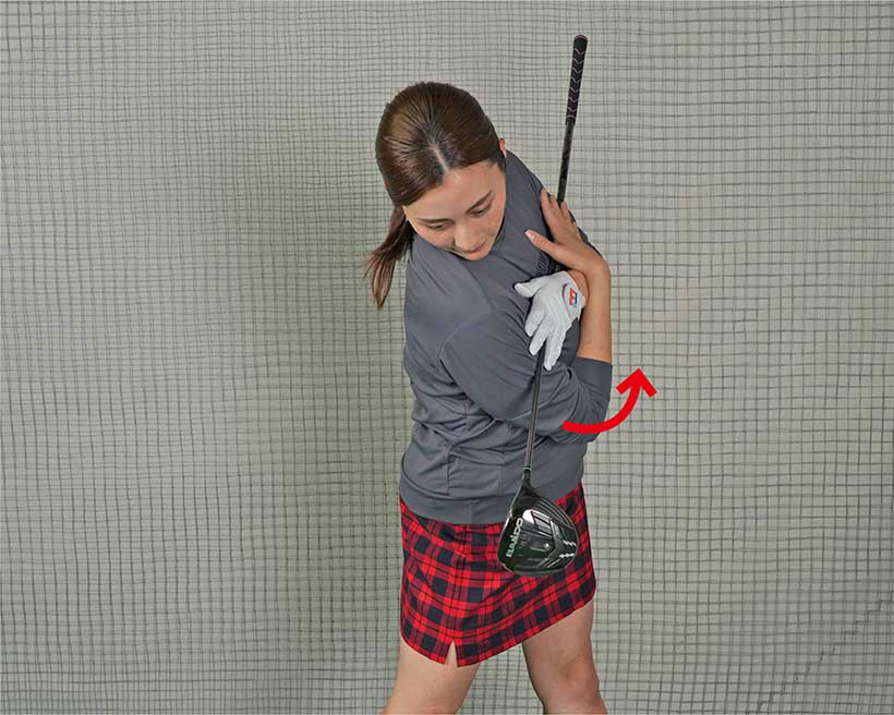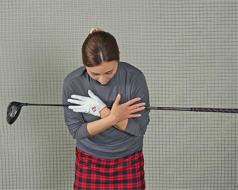 カラダの回し方がわからなければ胸の前にクラブを当てて捻転を体感しよう!