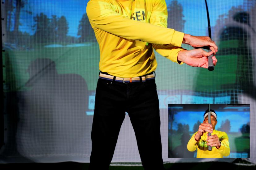 「連続素振りができない人はまだ力で振ろうとしています。グリップもギュッと握らない。つまむくらいの感じにするとヘッドが動き出し、丸く振れます」(内海プロ)