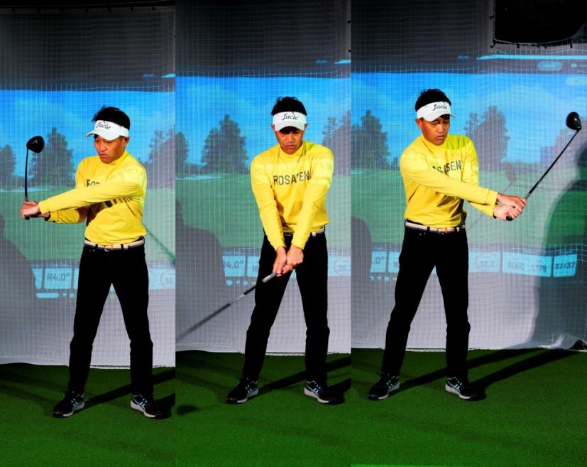 丸く、速いスピードでクラブを振るためには余計な力を入れない。