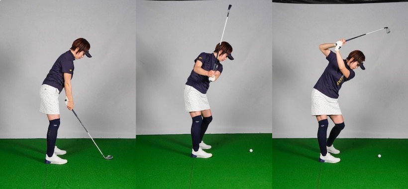 最初はタテ回転、途中からヨコ回転になるのが正しいスイング