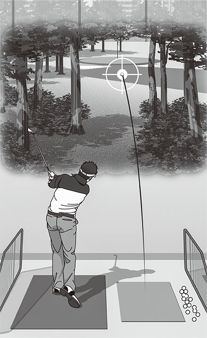 マネジメント面で考えれば、ミスが出たときの対策を考えた練習も多く積んでおく必要があります。ドライバーが左に曲がった。コースならボールは林の中。そうしたら次は林の中からの脱出を想定し、6〜7番アイアンで50〜60ヤードの低い球を打つ。右に飛んだなら傾斜地の場面をイメージし、高くティアップしてクラブを短く持ち、ツマ先上がりのショットの想定練習をしてみる。ボールを右足のカカトで踏めば左足下がり、左カカトで踏んで左足上がりのイメージ練習。そんな具合にちょっとした工夫でリカバリーの練習はいくらでもできます。