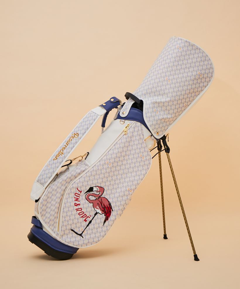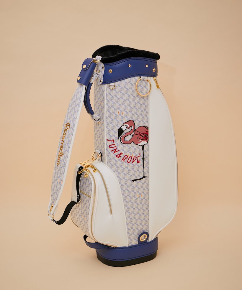 「Resurrection」 はゴルフを”ひとつの小旅行”という観点で捉え、街からゴルフ場へ、ゴルフ場から街に帰ってきた時にも違和感なくその街に馴染む、そんな上品なアイテムを提案しているブランドだ。「Resurrection」の人気モデルの中から今シーズンの新色「オーシャンホワイト」のアイテム4型に、「JUN&ROPE’」のアイコンのフラミンゴをペイントしたコラボレーションアイテムが登場。