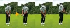 最初は、腰の高さの振り幅で、クラブを替えながら左右対称に振り、球筋と飛距離がどう変わるのかをチェックしてみてください。トーナメントのタフなコースセッティングを除き、皆さんがプレーする一般営業のコースセッティングなら、この構え方と打ち方でアプローチの8割はカバーできると思います。