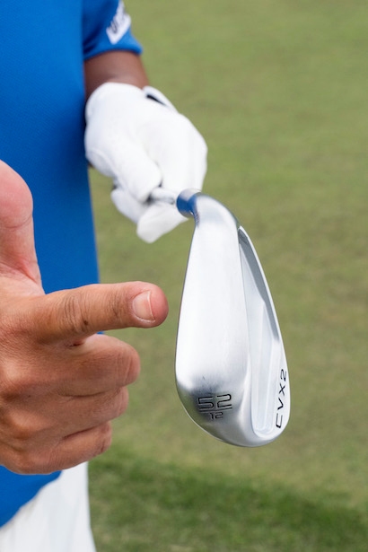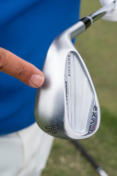 「54、56度のSソールはすごくフェースを開きやすいモデルです。実は今回、僕が一番スゴいと思ったのがこのSソール。なぜかというと、普通はヒールバンスを大きめに設けると、バンカーから出づらい人に特化したようなやさしいだけのウェッジになってしまうんです。もちろんそれはそれでアリなんですけど、このCVX 2 ZIPCOREはベタベタにやさしいビギナー向きとは明らかに一線を画していて、しっかりキャラが出ています。フェースを開いて打っても振り抜きがいいソールになっているところが秀逸。ソール幅が広いから安心感もあります。3つのソールデザインの中では一番画期的だなと感じましたね」