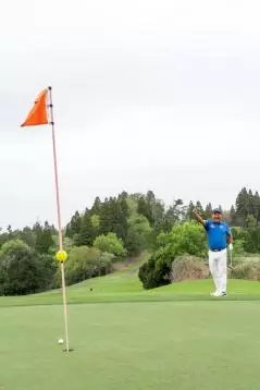 「見た目はちょっと大きめですがきになるほどじゃなく、むしろ安心感がありますよ。打感も良くて、打っているとキャビティだってことをすっかり忘れてました。キャビティだとどうしても打点部分の肉厚が薄くなってバイブレーションが大きくなるんですが、それが消されていて手の中にソリッド感が残ります。フルショットしても頼りなさやインパクトがボヤける感じは全くないです。トゥ、ヒールみたいになると鈍感なものになりがちなんですが、打感でも折り合いがついている。あらためてキャビティだって思うとちょっと不思議な感覚です。ボールもつかまってスピンが入る手応えもありました」