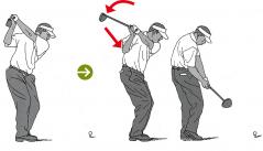 フェードとドローのインパクトゾーンでのヘッドの動きはほぼストレートと同じ。フェースターンを加減するのではなく、フォローでのヘッド軌道をわずかに変えるだけでいい。フェードの場合はインに低く振り抜くイメージでOK。