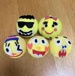 ・テニスボールでキャラクターを作ろう:テニスボールを顔に見立て自由に自分だけのキャラクターを作るワークショップ。完成後は持ち帰りできる。