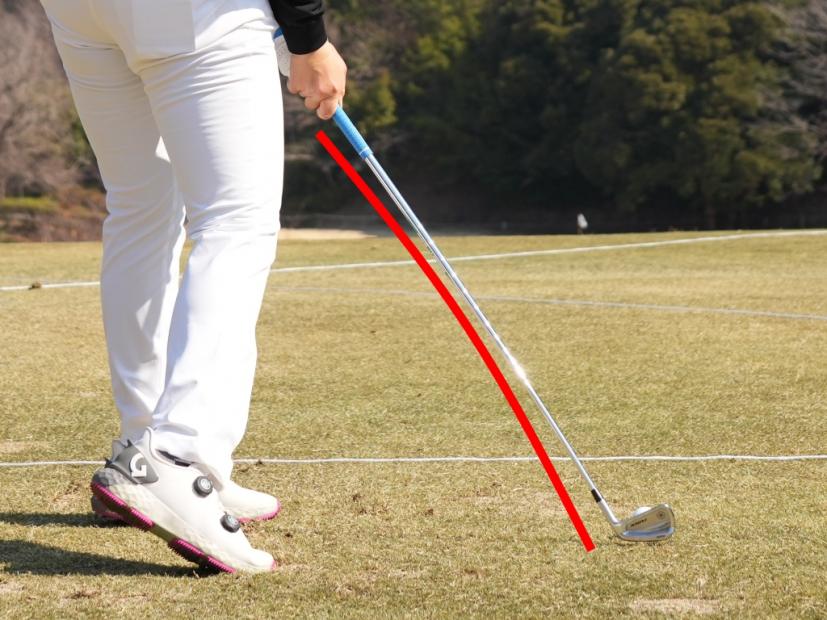 この要因により、ヘッドは、スイング中に、地面方向に下がるいわゆる「トウダウン」現象が起き、タイミングによってシャフトが「逆しなり」をしてヘッド(フェース)が先行してインパクトを迎えることになります。