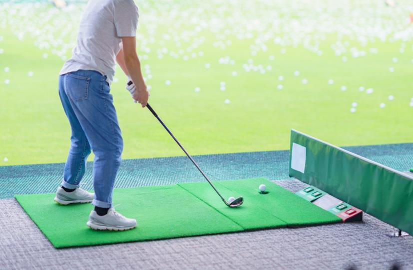 練習場へ出かけたらボールの手前のマットにガムテープなどを貼り、テープが剥がれないように打つ練習をすると、ダフりにくくなります。
