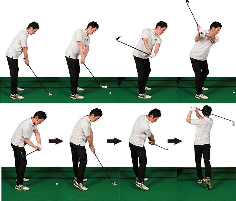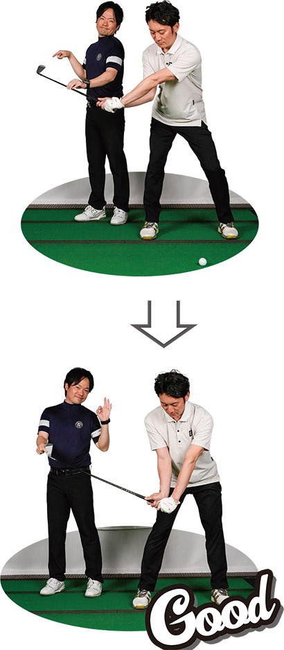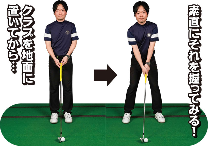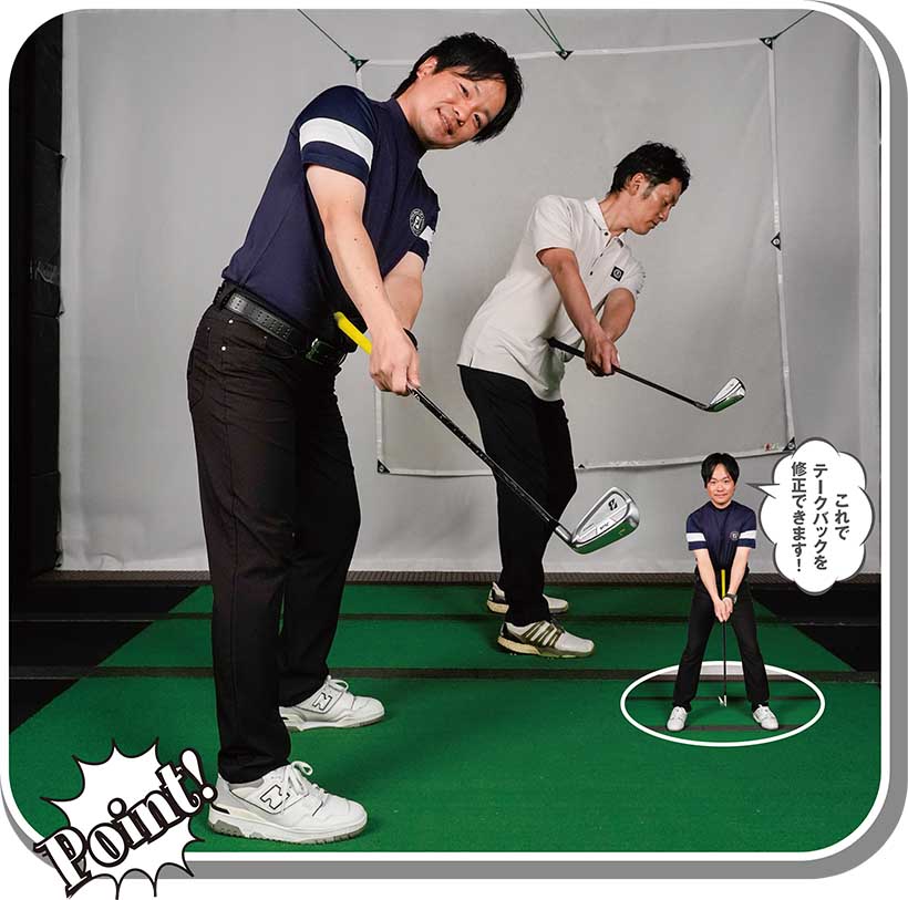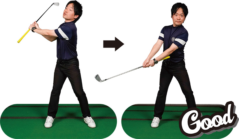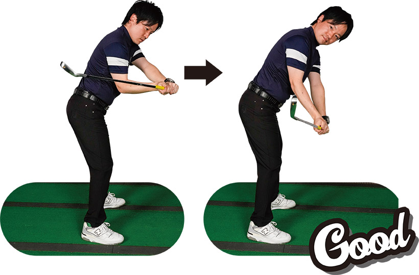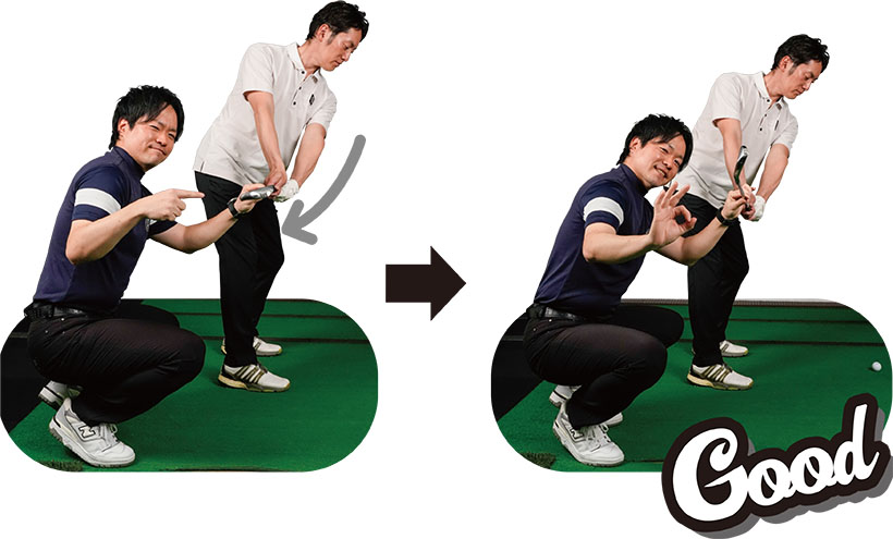 (写真右)スクエアに下ろせてインパクトが安定します!