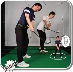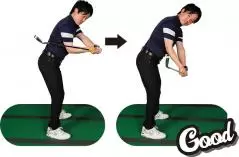 グリップエンドをお腹にくっつけてテークバックしてみましょう!