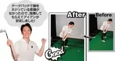 インパクトを天才的な感覚でアジャストするのはさすがです!ただその前段階を修正することで出球を安定させましょう。