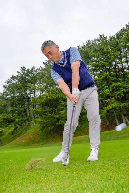 「距離は間違いなく飛んでいました。ロフトは違いますが僕の7番と比べたら1番手以上、10~15ヤードは飛びました。また、フェースの下側に当たった時の球の上がりやすさは特筆モノで、ラウンドでは、ちょっと悪いライで薄めに当たったボールが浮いてくれて助かった、みたいなことが起こるんじゃないかと思います。ソールは台形構造で刺さる感じがなく抜けがいい。実際、ダフり気味に入った時もスッと抜けてくれました。打球の最高点が安定していて球筋が揃いやすいのもいい。ウォーミングアップなしに打っても球の高さが揃いました。競技志向で常時70、80台を目指していく人にとって、やさしいとはどういうことかを考えた作り方がされていると思います。カッコいいアイアンを使いたいけれど、それだと飛ばなかったり、止まらなかったり、という問題が出てきやすいものですが、そういった見栄の部分とのバランス感覚も悪くない。あらゆる意味でコースでの使い勝手がいいと思いますね」