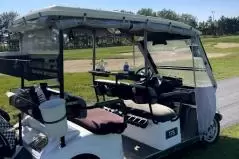 カートはこんな感じ。ドリンクホルダーやポーチなどがついているので、ゴルフ女子に欠かせない日焼け止めの塗り直しが楽だし、ボールや小物、携帯などをサクッと取れてかなりストレスフリー。