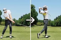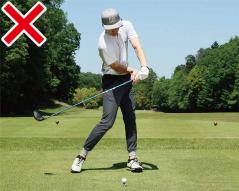 それにドライバーは振り遅れやすいクラブでもあります。飛ばそうとしてカラダの動きが過剰になると余計に振り遅れてフェースの芯に当たらないし、結果的にクラブがスムーズに振り切れず、フィニッシュの体勢が崩れやすい。コレがキレイなスイングで振れなくなってしまう要因です。
