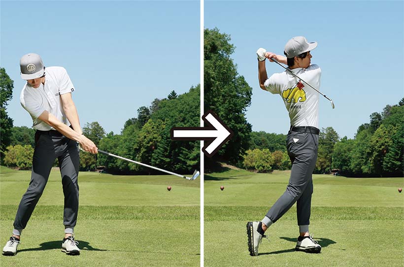 ドライバーは遠心力を利用しやすいクラブですが、アイアンよりも軽く感じられます。アイアンとのギャップがドライバーを難しくしているのです。