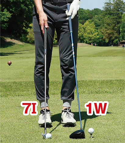アイアンは芝の上から打つ。ドライバーはボールをティアップして打つ。しかもドライバーはアイアンよりもシャフトが長くてヘッド体積も大きい。